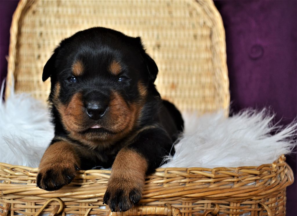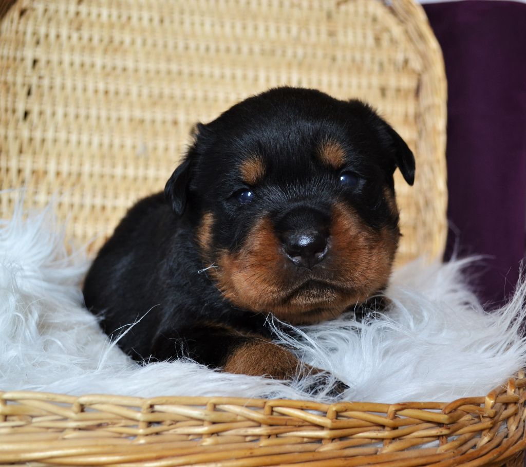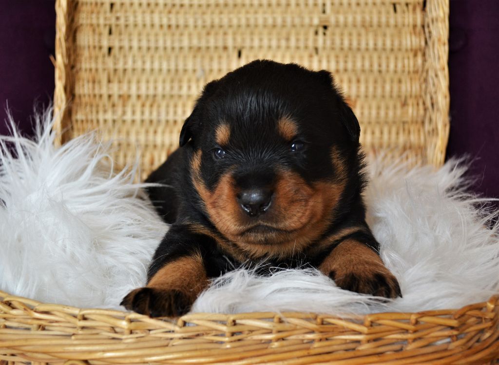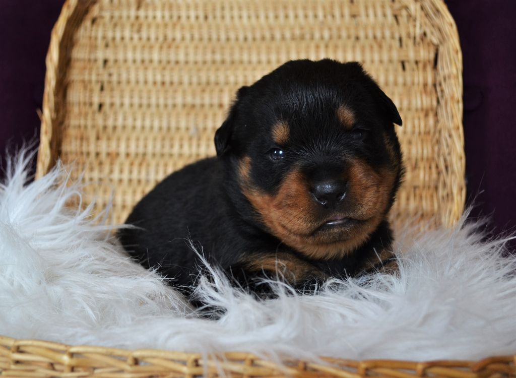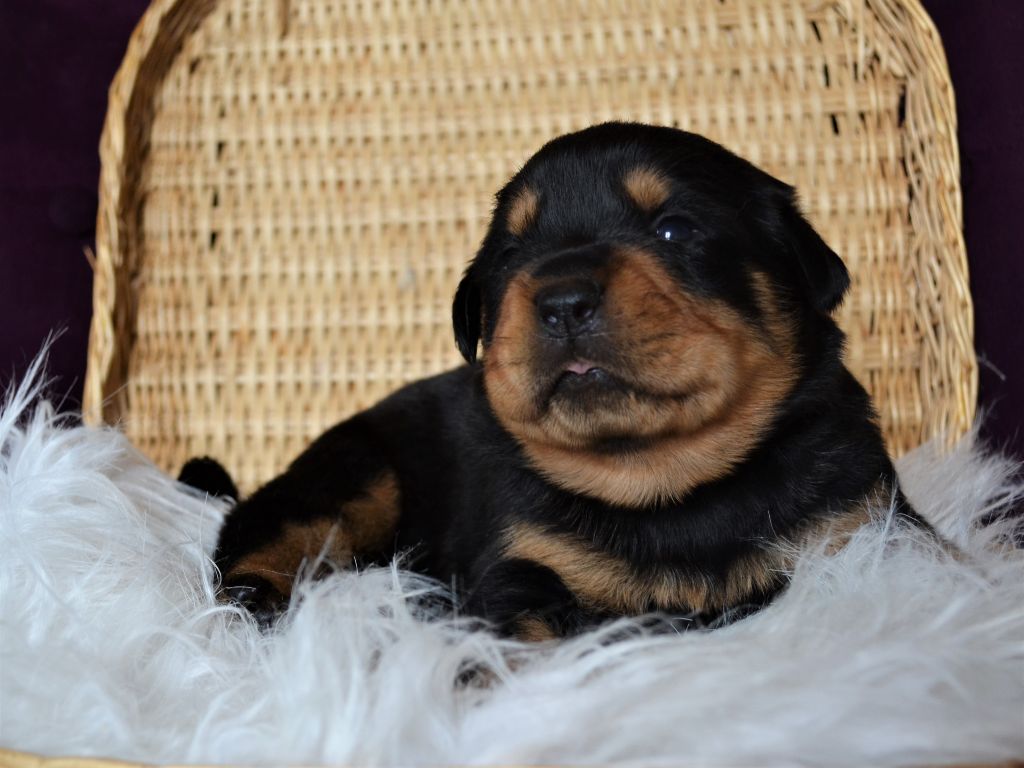 L'élevage du Royaume de Dolly vous propose à la réservation d'adorables petits Rottweiler. Ils sont nés le 21/04. Ils seront disponibles à 2 mois. Ils seront vendus vaccinés, identifiés par puce électronique et avec un kit chiot. Les parents sont LOF et testés pour toutes les maladies liées à la Race. Pour toutes réservations l'attestation d'aptitude pour chiens de catégorie 2 vous sera demandée. Nos femelles sont à 1300?. Nos mâles sont à 1200?. Paiement possible en plusieurs fois. Notre élevage se situe aux Loges (14240) à 30 minutes de Caen et de Saint-Lô. N'hésitez pas à nous contacter pour plus de renseignements. Téléphone : 06 48 91 30 08