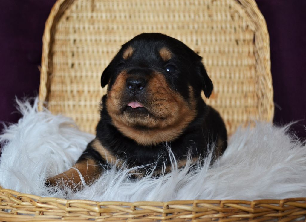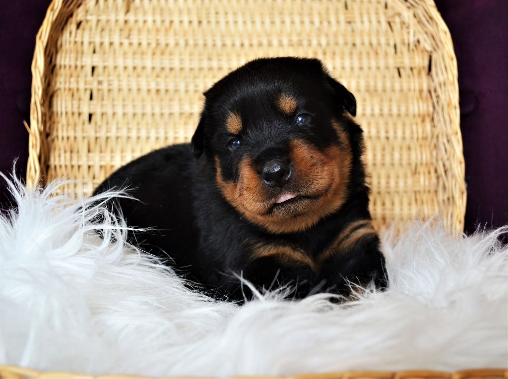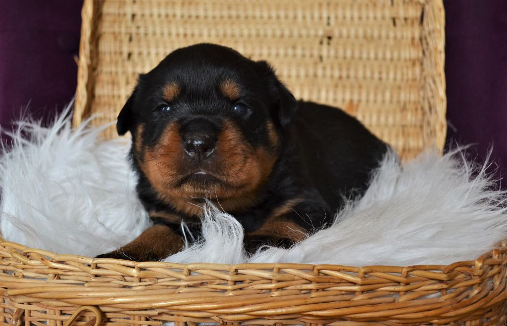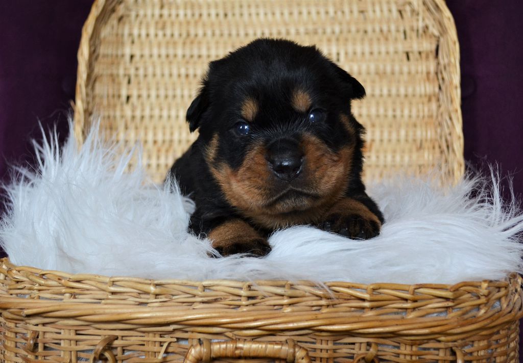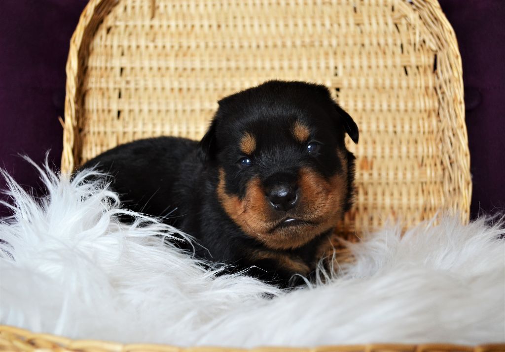 L'élevage du Royaume de Dolly vous propose à la réservation d'adorables petits Rottweiler. Ils sont nés le 21/04. Ils seront disponibles à 2 mois. Ils seront vendus vaccinés, identifiés par puce électronique et avec un kit chiot. Les parents sont LOF et testés pour toutes les maladies liées à la Race. Pour toutes réservations l'attestation d'aptitude pour chiens de catégorie 2 vous sera demandée. Nos femelles sont à 1300?. Nos mâles sont à 1200?. Paiement possible en plusieurs fois. Notre élevage se situe aux Loges (14240) à 30 minutes de Caen et de Saint-Lô. N'hésitez pas à nous contacter pour plus de renseignements. Téléphone : 06 48 91 30 08